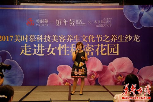 據了解,此次科技美容養(yǎng)生文化節(jié)是美時慕公司2017年的重頭大戲,以科技美容、健康養(yǎng)生為主題訴求,通過組織開展各種形式多樣的美容養(yǎng)生活動,完成向社會大眾傳播美麗、傳遞美好的活動目標。本次活動歷時四個月,參與人數多達數萬人。 “如何讓傳統(tǒng)養(yǎng)生更時尚、更新潮、更具科技感,從而滿足現代女性的需求,是我們策劃此次活動的初衷。”據美時慕副總經理彭磊介紹,公司此次包場豪華游輪在湘江上舉辦科技美容養(yǎng)生沙龍,旨在為每位到場顧客提供一種更舒適、更私密、更新潮的休閑養(yǎng)生方式 。